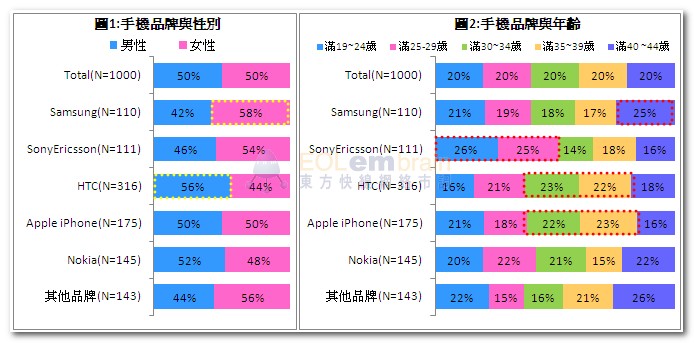 以上調查乃根據EOLembrain東方快線網絡市調於2011年5月針對東方快線網絡市調會員所進行的「智慧型手機品牌大調查」而得,樣本組成如下: